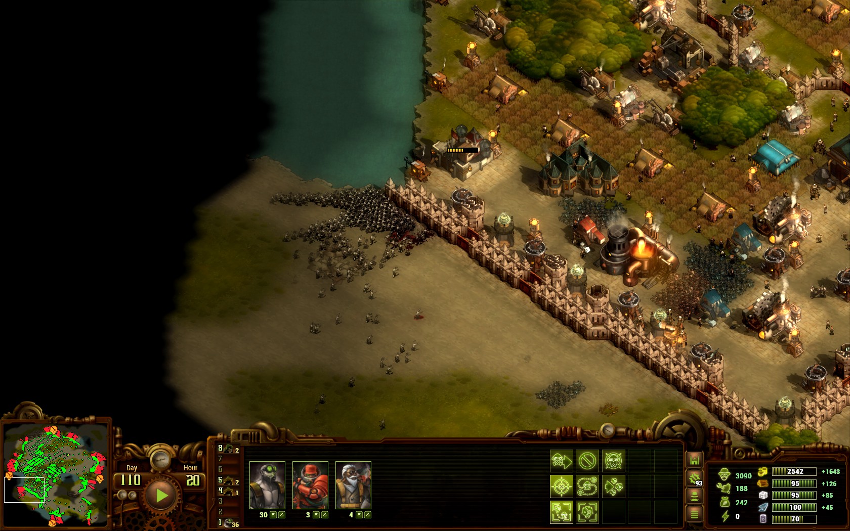 팁을 좀 주자면 마지막 웨이브 때엔 쓸모 없는거 다 팔고 방벽을 지으면서 전선을 물려야 한다. 어떻게든 정부 청사(본진)만 살리자.