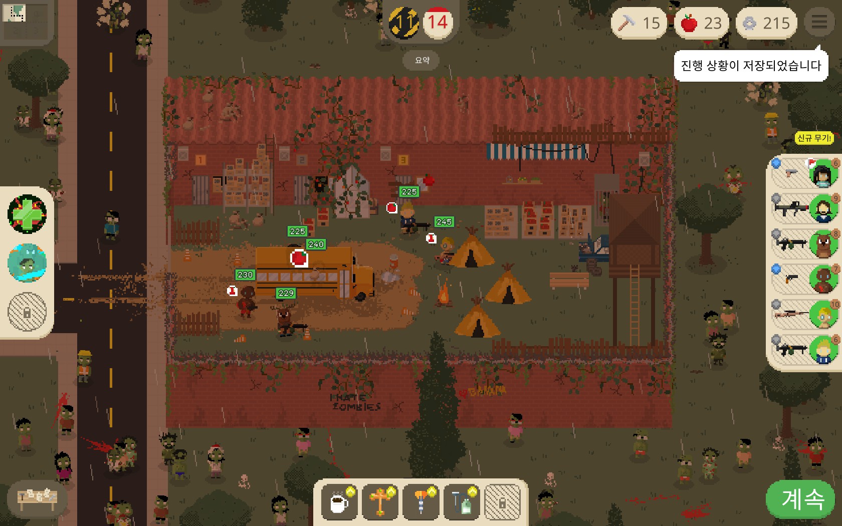 생존자의 수가 늘어나면 화력이 증가하지만 반면에 식량이 모자라 필요한 탐색을 하지 못할 가능성이 높으며, 너무 자만하여 밤늦도록 버스로 귀환하지 않다가 좀비떼에 둘러싸여 죽기도 하는 등. 긴장을 늦출 수 없다.