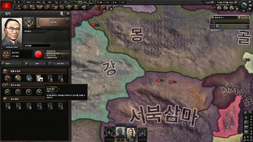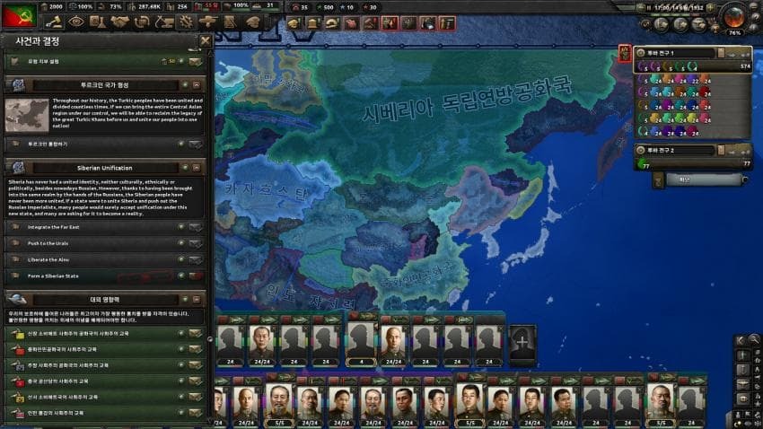 여기까진 거의 고정적인 흐름으로 움직이고 중국에 괴뢰국 쫙 박았다면 시베리아 호랑이 업적은 거의 끝났다고 보면 됩니다.