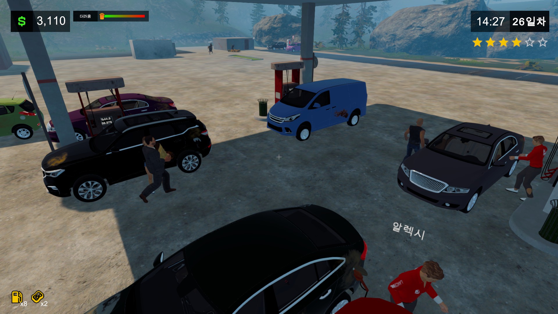 주유소 꾸미기가 존재하지만 매출과 이득은 한정되어 있기에 멍하니 하루를 보내고 다음날을 기다리게 된다.