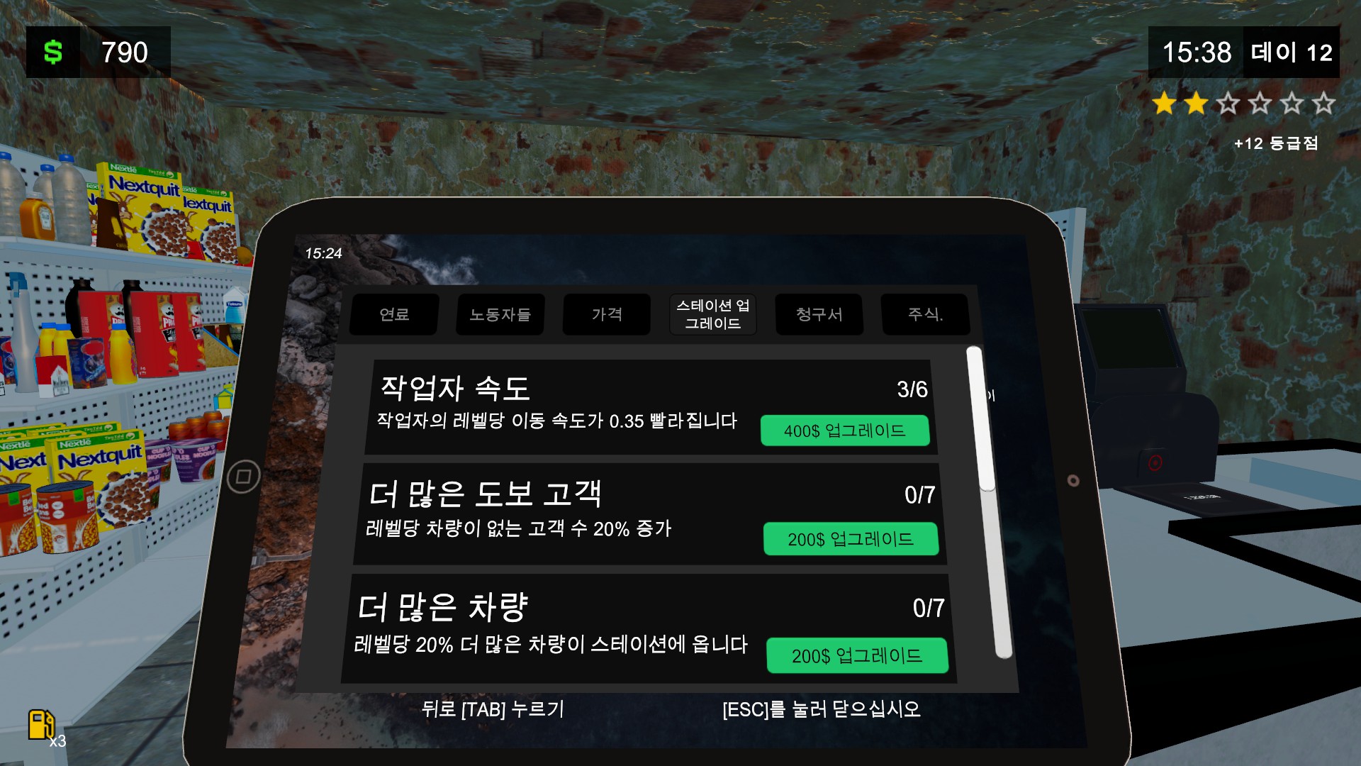주유소 운영 중간중간 터지는 돌발 이벤트도 없어서 오로지 시간만을 보내게 되기에 차라리 이것저것 신경 쓰느라 바빴던 예전이 훨씬 더 재미있지 않았나 싶은 생각이 들 정도로 재미의 곡선이 급격히 하향한다.
